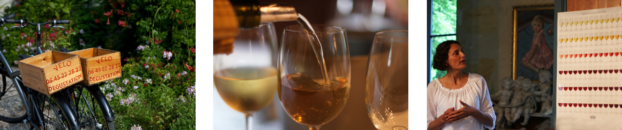 Initiations à la dégustation de vins pour débutants, en famille ou entre amis, cours d’œnologie pour particuliers ou comités d’entreprises, découverte des vins de Bordeaux et du Château Bardins, randonnées pédestres et balades à vélo dans les vignobles bordelais et visite des chais… Vous trouverez forcément une activité qui vous correspond parmi les animations proposées !